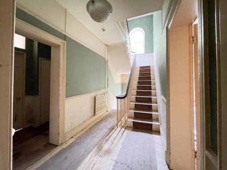 RECEPTION HALL 10' 4" x 22' 2" (3.16m x 6.78m) maximum plus 6'6'' x 6'4'' (2.00m x 1.95m), staircase off, doors arranged off to