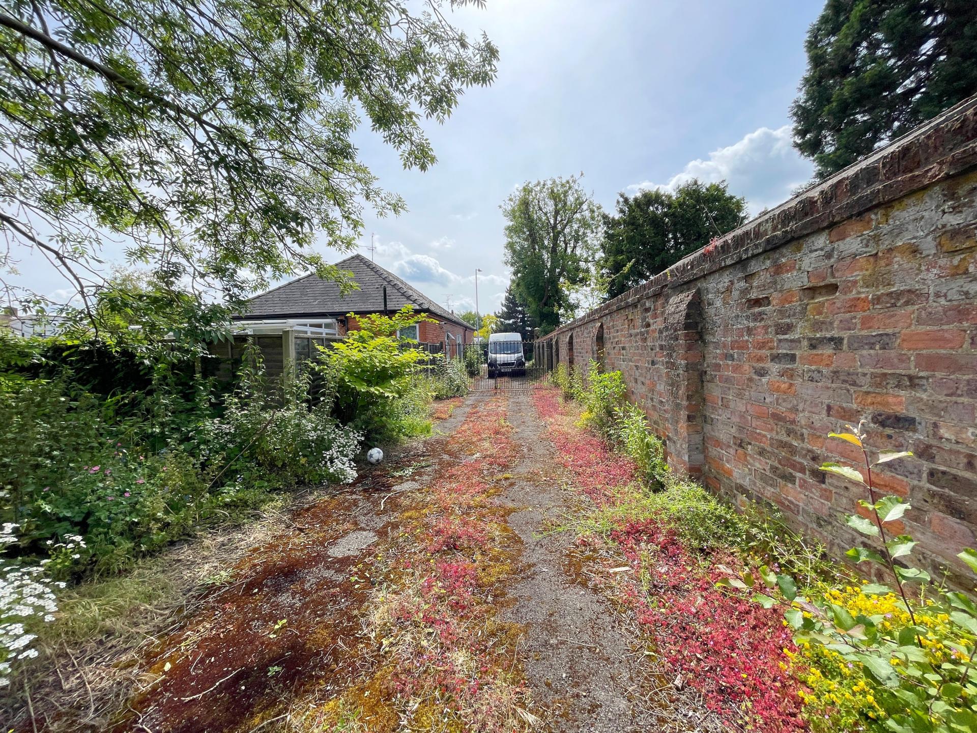 ESTABLISHED REAR GARDENS These are of generous proportions with central lawned area, extensive pathways, stocked borders, a variety of shrubs and mature trees. Twin gates lead from Halmergate providing vehicular access to the rear of the garden and the garages. There is also a vegetable garden area to the right hand side of the driveway.