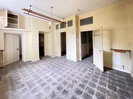 PROVISIONS PANTRY 5' 5" x 4' 0" (1.66m x 1.22m) Fitted shelving, cupboard, cup hooks, electric light.