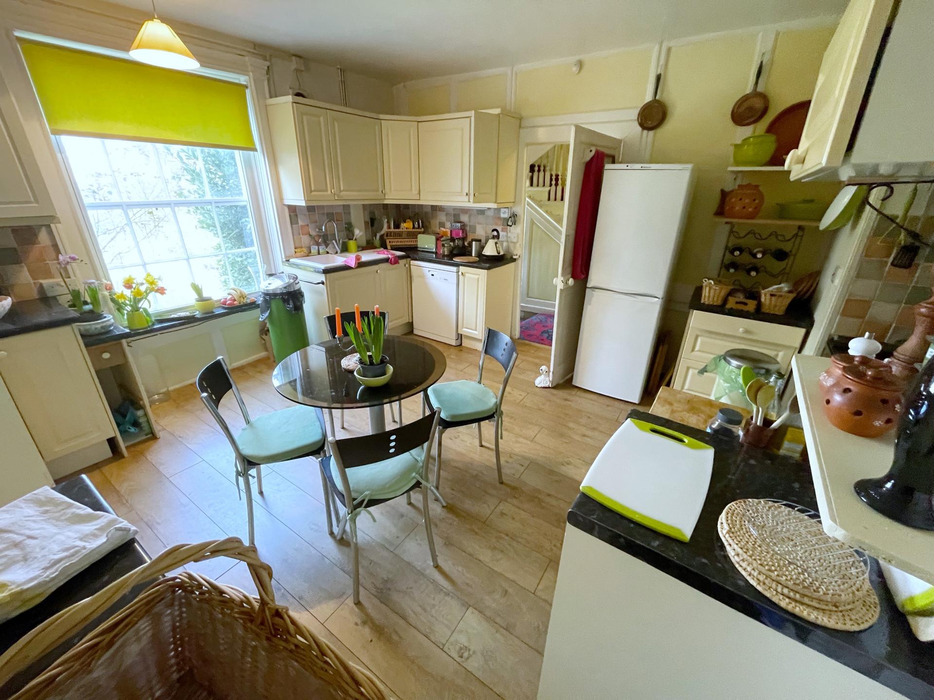 KITCHENETTE 12' 4" x 9' 10" (3.76m x 3.0m) max - Fitted wall and base cupboards, single drainer sink unit, radiator, Dorma window to the rear with views over the rear garden.