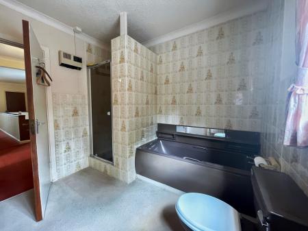 BATHROOM 8' 11" x 8' 11" (2.72m x 2.73m) Access door direct from the Landing and further access door from Bedroom 4 providing a potential En-Suite, shower, low level WC, panelled bath, wash hand basin, fan heater, UPVC window, electric heated towel rail, radiator.
