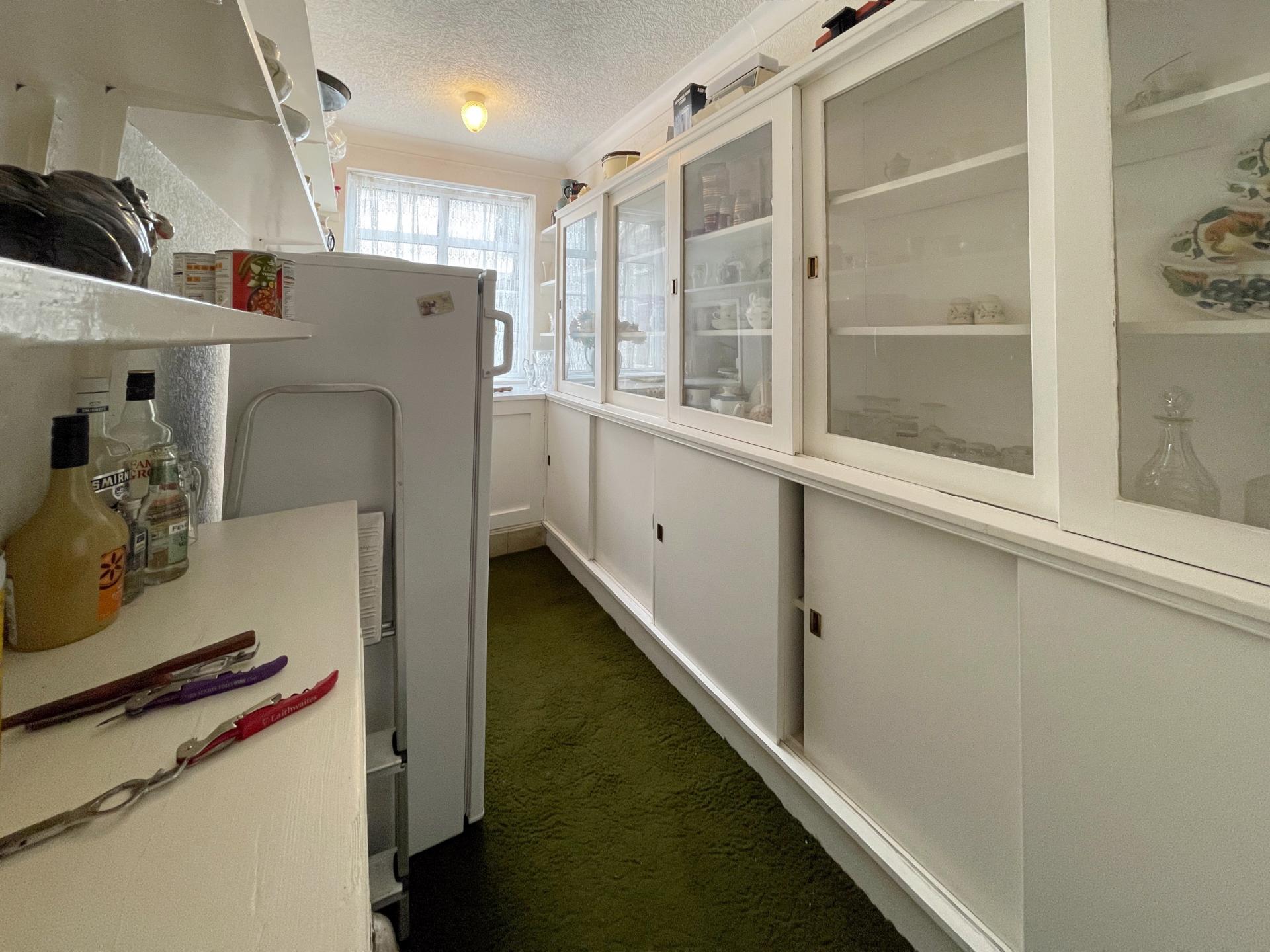 PANTRY 5' 6" x 12' 2" (1.70m x 3.71m) China cabinets, shelving, UPVC side window.