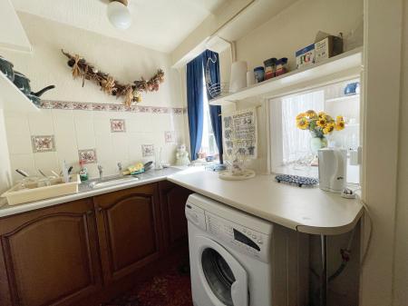 UTILITY ROOM 5' 5" x 6' 1" (1.67m x 1.87m) UPVC front window, serving hatch, single drainer sink unit, plumbing and space for washing machine, door to: