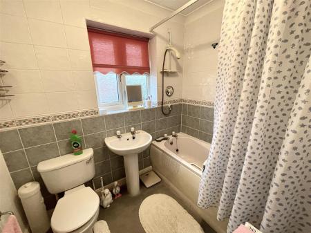 BATHROOM : UPVC obscured double glazed window to the rear, panelled bath with taps and a mixer shower over, pedestal washbasin with taps over, W.C, radiator.