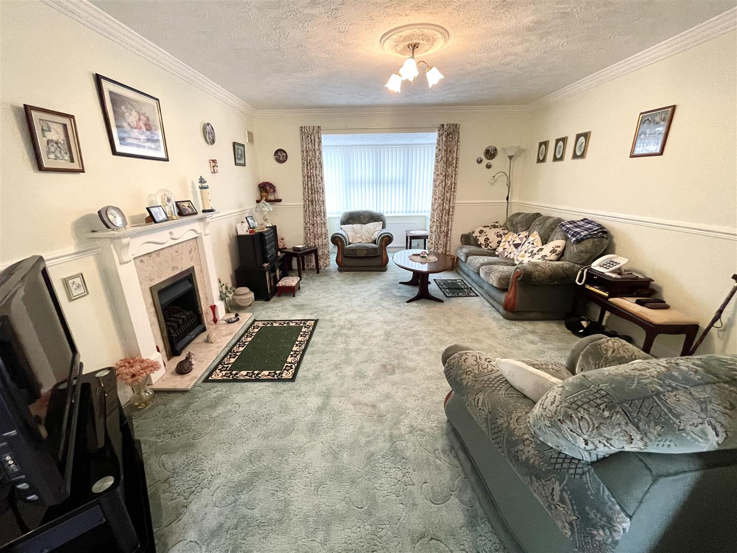 LOUNGE : 5.49m x 3.86m (18'0" x 12'8" ) Having a box bay UPVC double glazed window to the front and side, radiator, power points, TV point, gas fire and an archway through to the dining room.