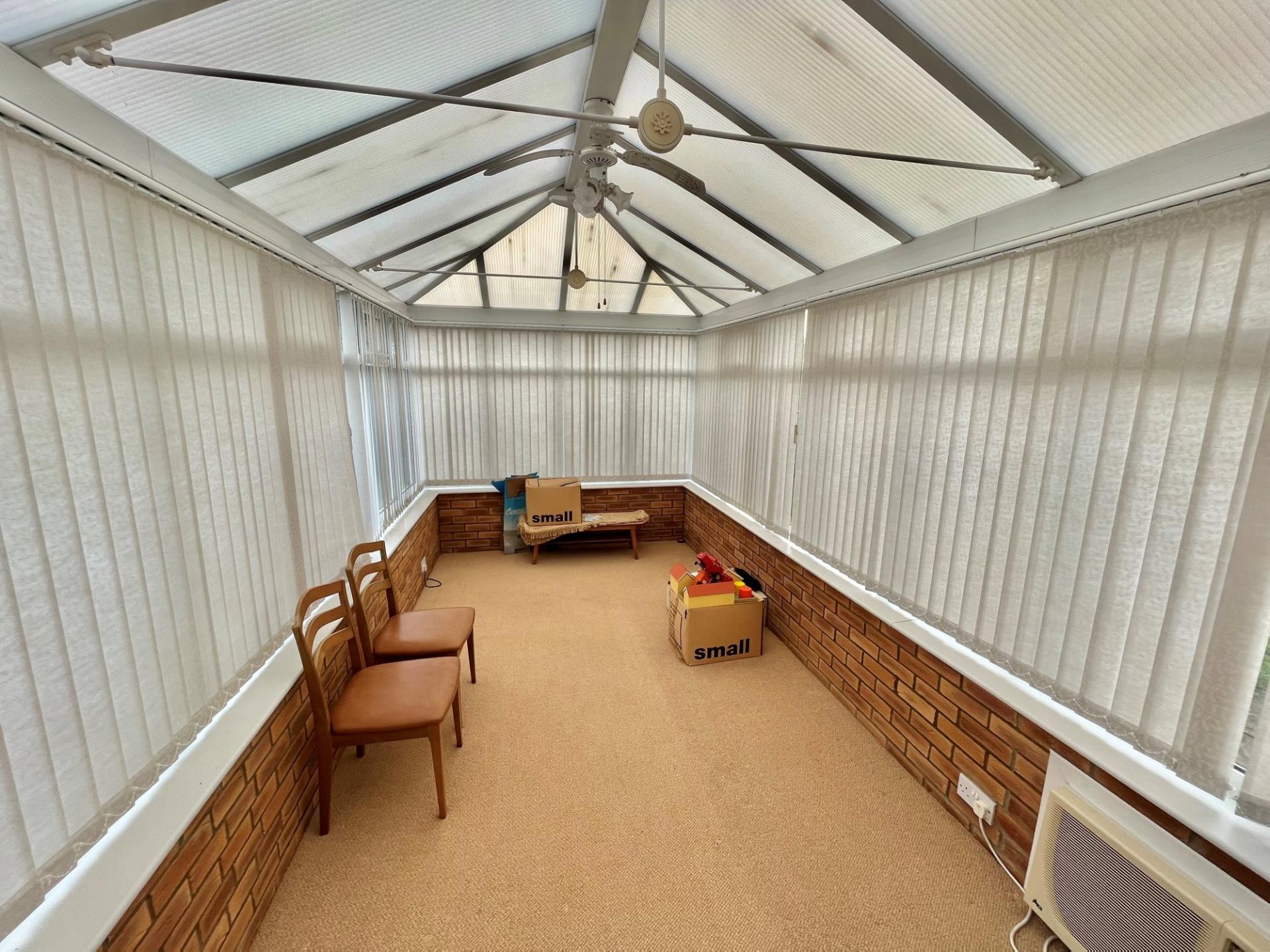 CONSERVATORY 20' 11" x 7' 8" (6.38m x 2.36m) Brick and UPVC construction, pitched polycarbonate roof, electric plug in fan unit, ceiling light, French doors to the exterior.