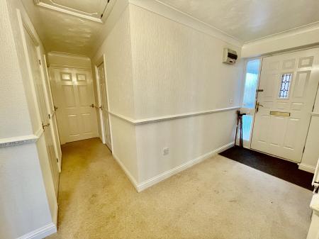 INNER HALL 16' 3" x 3' 0" (4.96m x 0.92m) plus recess Telephone point, coved and textured ceiling, dado rail, smoke alarm, Airing Cupboard, central heating thermostat control, fitted store cupboard, doors arranged off to: