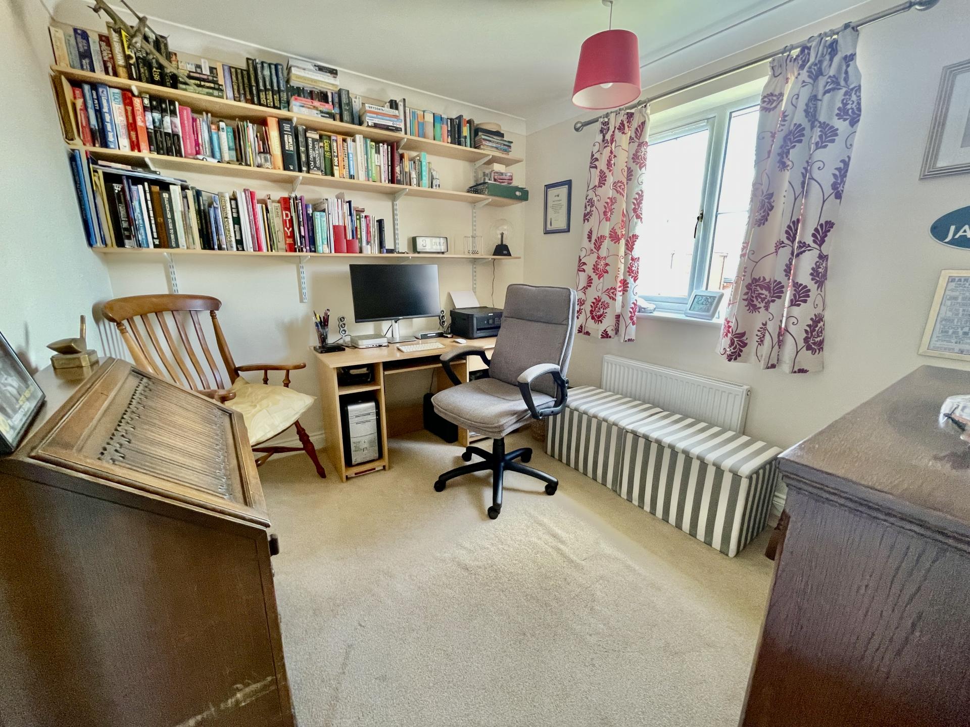 DRESSING ROOM / STUDY 6' 8" x 7' 11" (2.05m x 2.42m) UPVC double glazed window to the front elevation, skimmed and coved ceiling, centre light point, work bench, BT point, radiator.