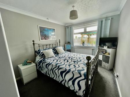 BEDROOM 2 9' 0" x 12' 6" (2.76m x 3.83m) With UPVC double glazed window to the rear elevation, textured and coved ceiling with centre light point and single radiator, triple fitted wardrobes with over storage, hanging rail and shelving.