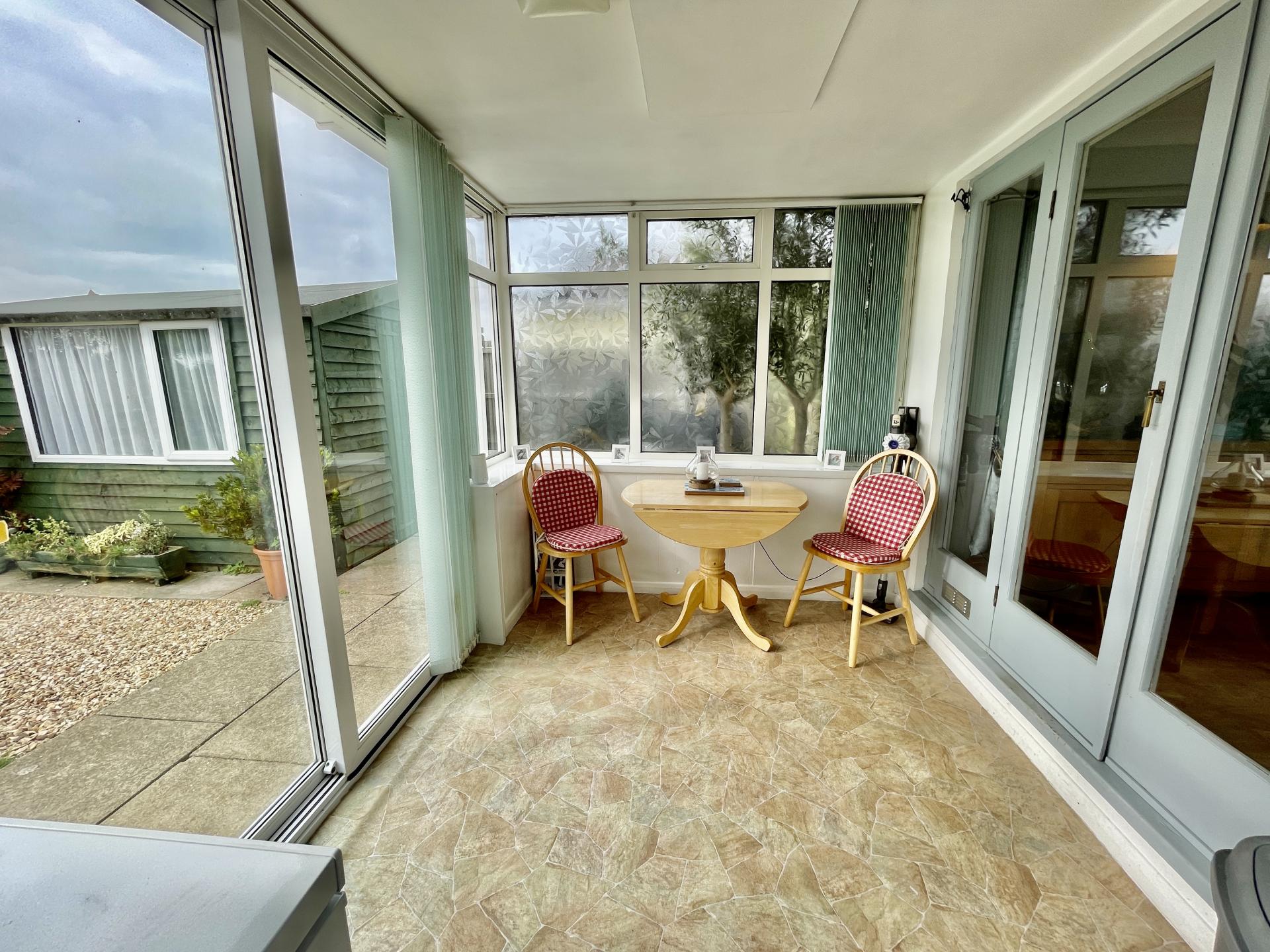 SUNROOM 7' 10" x 11' 6" (2.39m x 3.51m) Of dwarf brick wall and UPVC double glazed windows to rear elevation and UPVC sliding patio doors to rear elevation, obscured UPVC double glazed window to side elevation, skimmed ceiling and fitted vertical blinds, ideal for dining area.