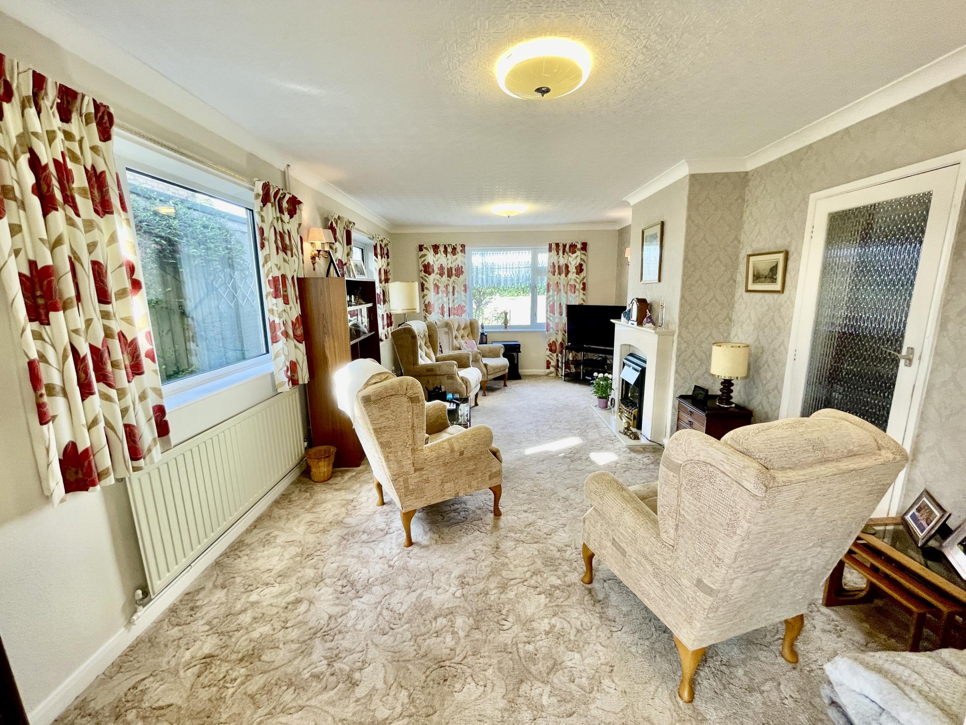 LOUNGE 12' 0" x 20' 3" (3.67m x 6.18m) UPVC double glazed window to the front elevation, 2 UPVC double glazed windows to the side elevations, 2 radiators, TV point, telephone point, feature limestone fireplace with insert and hearth with fitted electric coal effect fire, coved ceiling, 2 centre light points, 3 double wall lights, sliding door leading into: