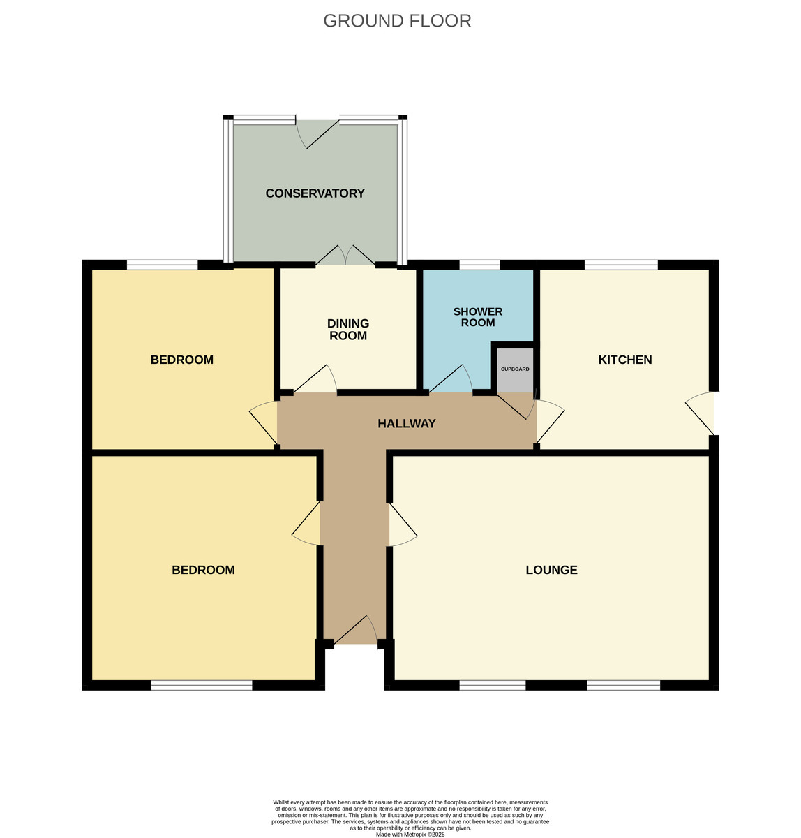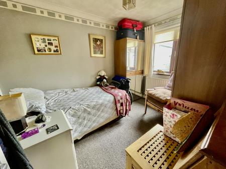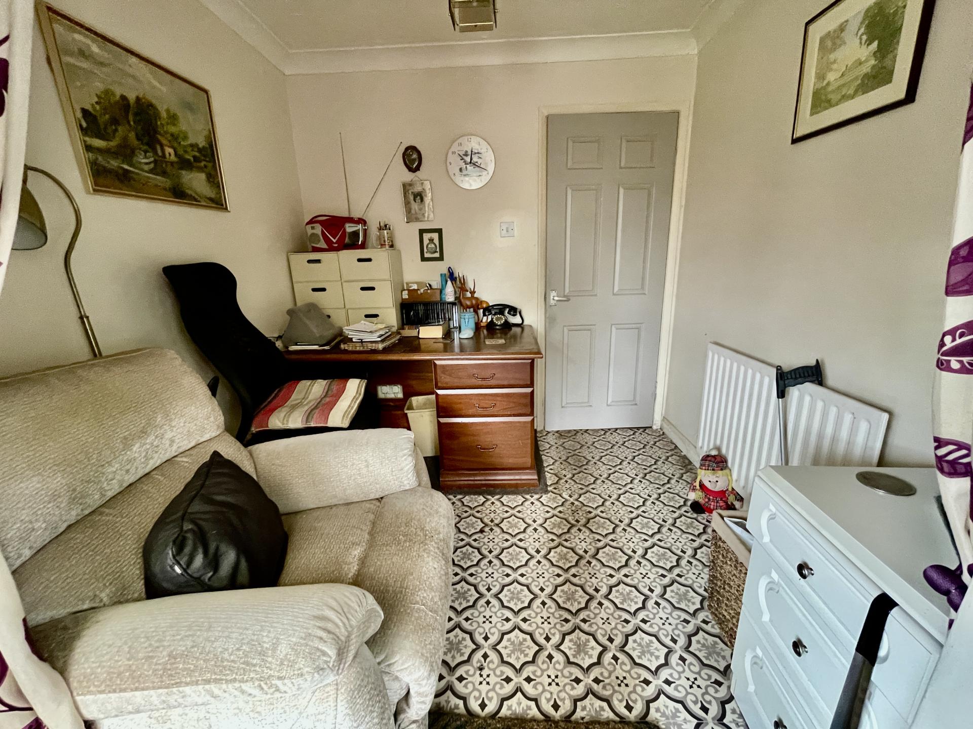 BEDROOM 3 7' 6" x 8' 0" (2.30m x 2.45m) UPVC double glazed French doors leading into Conservatory, coved and textured ceiling, centre light point, radiator, vinyl mosaic flooring.
