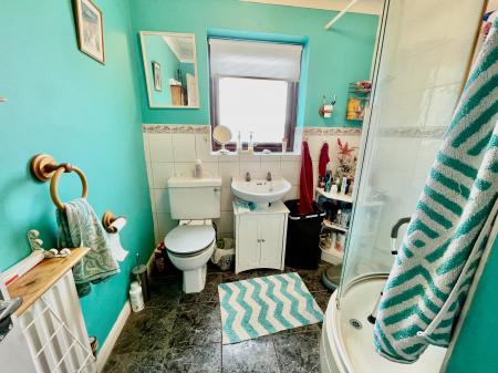 SHOWER ROOM 6' 11" x 7' 5" (2.12m x 2.27m) Obscured UPVC double glazed window to the rear elevation, coved and textured ceiling, centre light point, tiled flooring, part tiled walls, radiator, fitted with a three piece suite comprising low level WC, wash hand basin with taps, fully tiled cubicle with fitted power shower over.