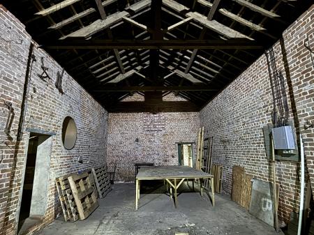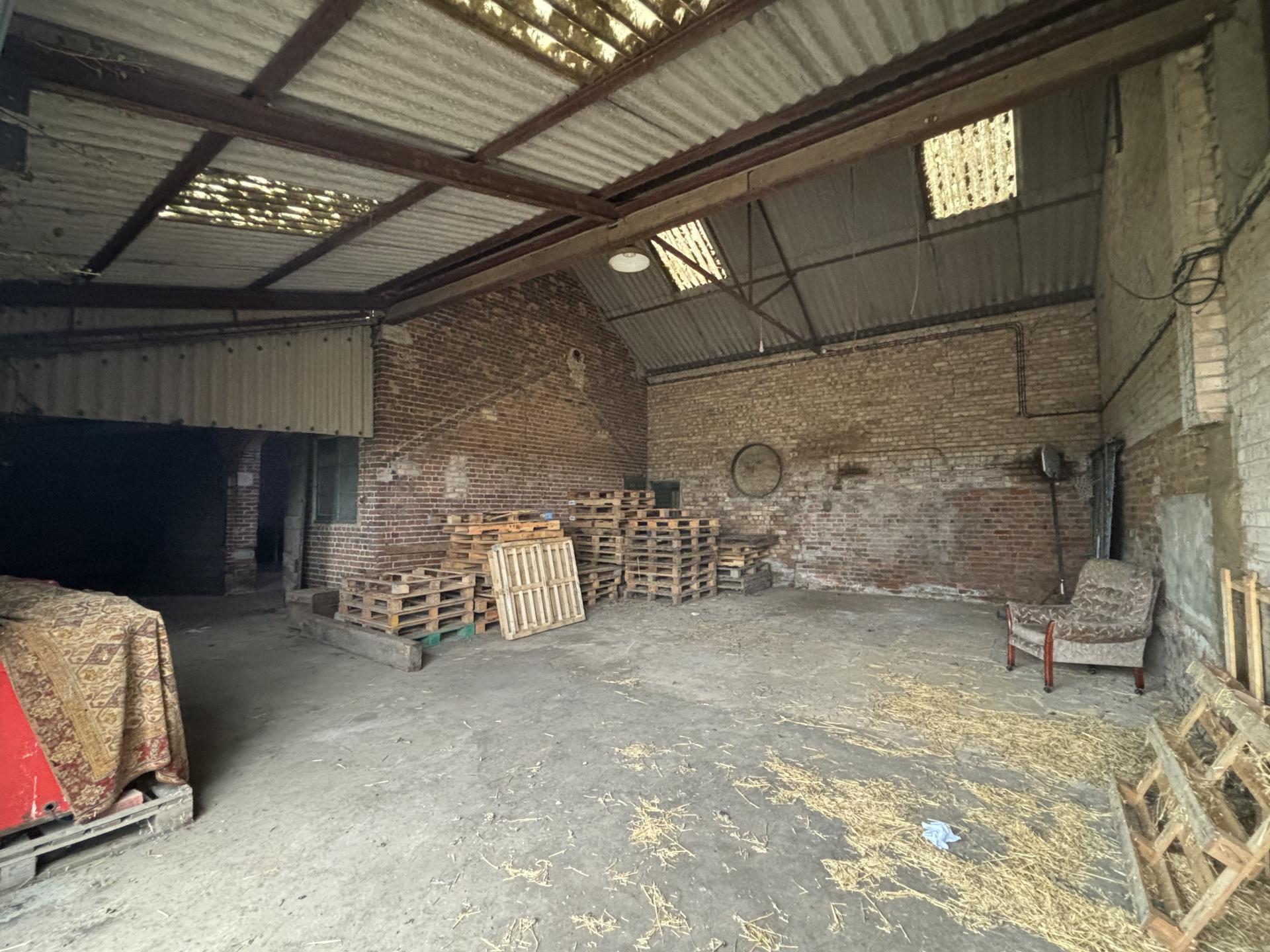 The Barn comprises of adjoining elements with the northern elevation being built of varying levels of brick, corrugated cement roof sheeting and metal profile sheeting. An electric, metal roller shutter door is also located on the north side of the property. There is a concrete apron to the south and west and partially, to the north.