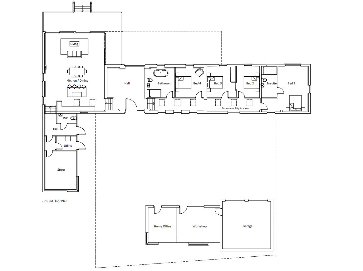The site extends to approximately 0.78 acres (0.31 hectares), including an area of grass extending to 0.07 acres immediately off Holbeach Road. The plans of the proposed development are available from South Holland District Council’s website. These display a 4-bedroom property incorporating open plan living. This includes a kitchen diner which leads off to separate w/c, utility room and storeroom to the west wing. To the east wing of the property, there is a bathroom and four bedrooms with Bedroom No. 1 having an en-suite bathroom.