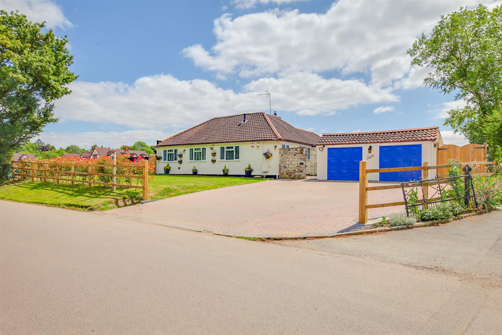 This large four double bedroom detached bungalow is found in the quiet and popular hamlet of Spellbrook. With a beautiful unoverlooked rear garden, a large driveway, a double garage and three reception rooms, it really is a fantastic sized family home. In the living area there is a large lounge, dining room, conservatory, kitchen with a range of fitted wall and base units and a shower room, with four double bedrooms and a large family bathroom in the sleeping quarters. The large south facing rear garden has mature flower beds and shrubs/bushes, lawned and patio areas, plus side access and access to the double garage. Spellbrook Lane West is located just off Cambridge Road, with easy access to both Sawbridgeworth and Bishops Stortford and within walking distance of Spellbrook Primary School.