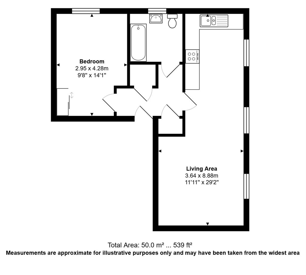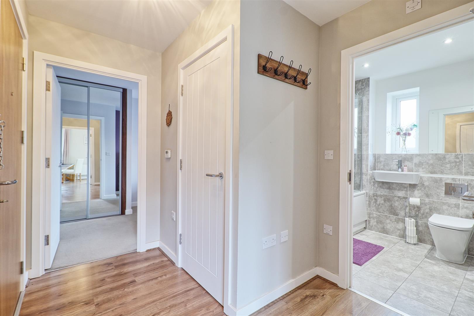 Entrance Hall: - Doors to open plan living area, bedroom, bathroom, two cupboards, wood effect flooring.