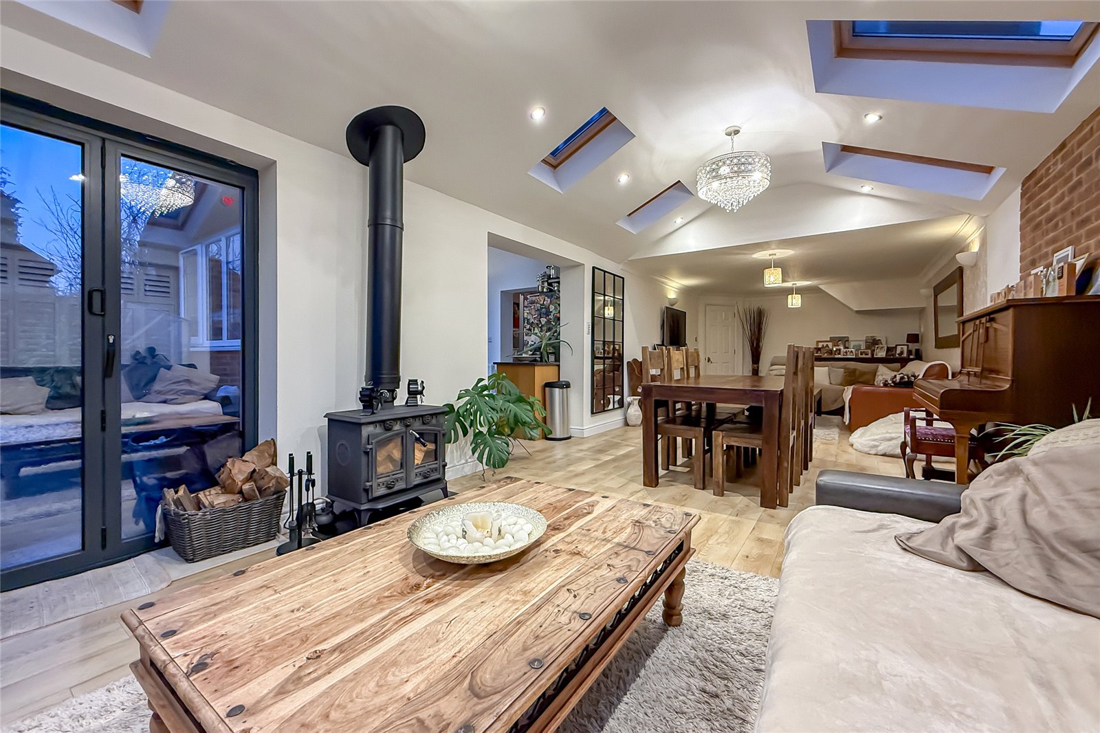 Enjoying over 2,200 sq ft of thoughtfully arranged living space across three floors, this impressive FIVE BEDROOM four-reception, three-bathroom family home is situated in the ever-popular village of Park Street. Offering generous proportions, versatile rooms and a warm, contemporary feel, it is ideal for modern family life.The property welcomes you via a front door into a useful vestibule, opening into a spacious and inviting entrance hall. From here, doors lead to a study overlooking the frontperfect for remote workinga separate family room, a practical utility room, and a guest WC. To the rear, the home truly comes into its own with an expansive open-plan living area, beautifully enhanced by Velux windows and wide bi-fold doors that open directly onto the rear garden. This bright and airy space flows seamlessly into the stylish kitchen, which offers ample storage and preparation space, and leads through to a well-sized playroom, creating the perfect hub for everyday family living and entertaining.The first floor hosts four generous bedrooms. The principal bedroom benefits from its own en-suite shower room, while the remaining rooms are served by a modern family bathroom. All rooms enjoy good natural light and are well proportioned, offering flexibility for children, guests or additional workspaces. Stairs rise to the second floor, where a further double bedroom enjoys its own shower room and extensive eaves storage, making it an ideal guest suite, teenagers retreat, or private home office.Outside, the rear garden provides a wonderful extension of the living space, featuring both lawn and paved areas for relaxation and play, along with a charming treehousea real treat for families with young children. To the front, a driveway offers off-street parking, adding to the homes convenience.The property is superbly positioned within walking distance of How Wood Station, offering easy links into Watford Junction and then London. A local school on Spooners Drive, along with a nearby shopping parade, ensures everyday essentials are close at hand. For wider amenities, St Albans city centre and its mainline stationwith fast services to London St Pancrasare only a short drive away. With excellent access to the major motorway networks, this location is ideal for commuters while still offering a strong sense of village community.