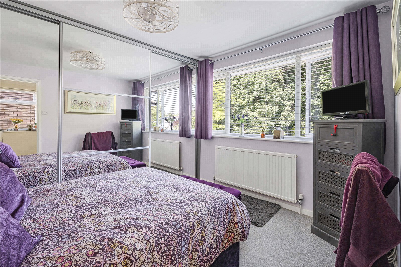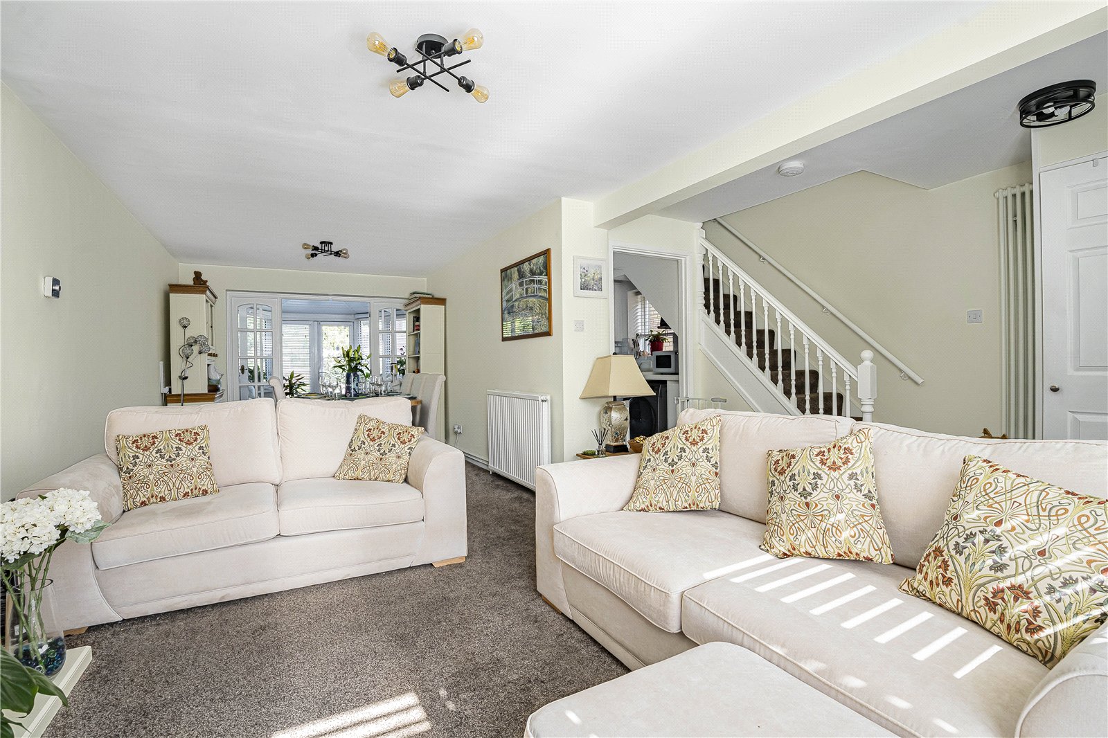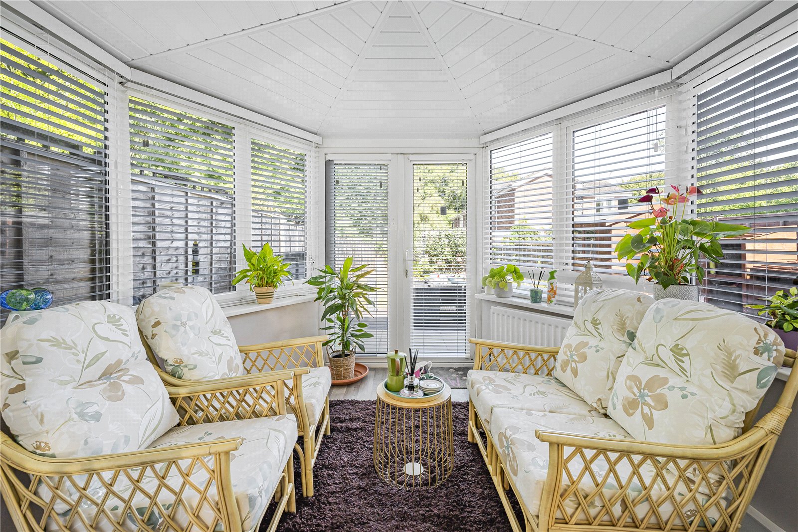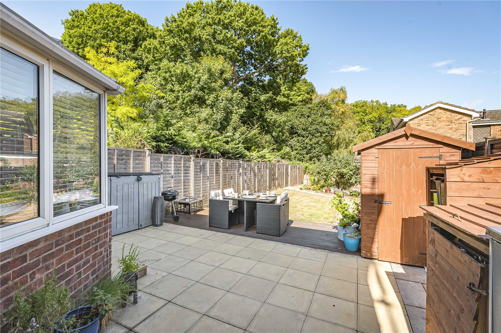 The ground floor features a bright and airy open-plan lounge and dining area, perfect for family living and entertaining, a separate kitchen can be accessed via the living area and there is scope to make it open plan. The layout flows seamlessly onto the large rear garden via the kitchen and the conservatory, complete with a patio area ideal for summer dining, while the woodland backdrop creates a private and tranquil setting. A downstairs WC is located by the entrance hallway.