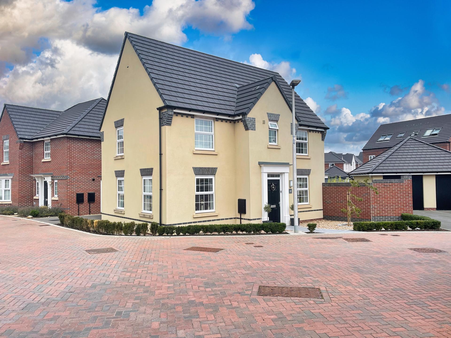 - Double driveway to the side leading to a single garage