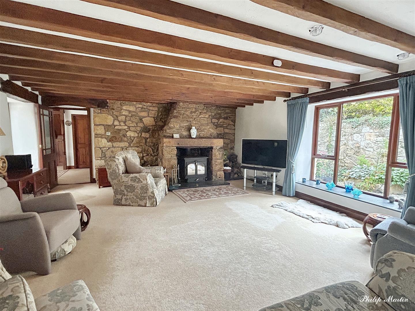 Sitting Room - 5.14m x 7.12m (16'10" x 23'4" ) - A spacious, well proportioned twin aspect room with large window to rear and glazed door providing access, two windows to front, all with slate sills. Exposed beams, feature stone fireplace with granite lintel, incorporating Clearview wood burning stove with a slate hearth and log storage in fire breast recess. Radiator. Television point, two wall lights. Door to: