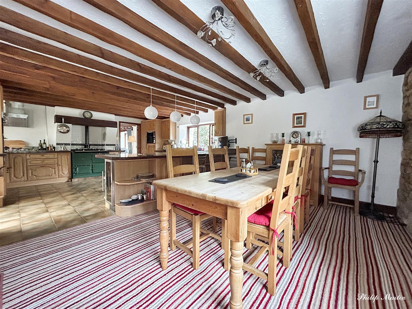 Kitchen/Dining Room - 7.70m x 4.93m (25'3" x 16'2") - Another well proportioned triple aspect room with windows enjoying views to the rear, side and front. Excellent range of base and eye level solid oak kitchen units. Integral appliances including fridge, dishwasher, double oven, gas stainless steel hob with extractor hood over. Aga for cooking and hot water. Tiled floor, high ceiling with exposed beams. Breakfast bar with lots of storage cupboards and drawers below. Television Point. Glazed door to: