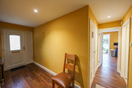 With an open canopied external open porch area leading to a half glazed Upvc door. Access to the roof void, built in storage cupboard, RCD unit, antique style radiator, LVT wood effect flooring, second cupboard housing Worcester wall mounted gas fired boiler.