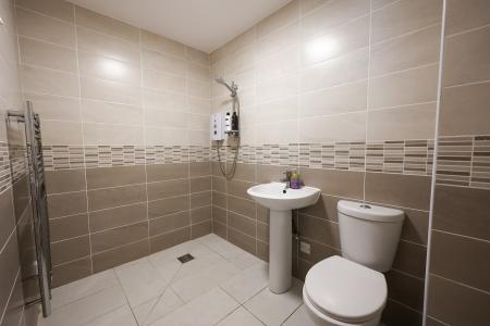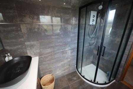 1.67m x 2.4m (5' 6" x 7' 10") With fully tiled walls and floor, extractor fan, electric shower unit, low level W.C. wash hand basin.