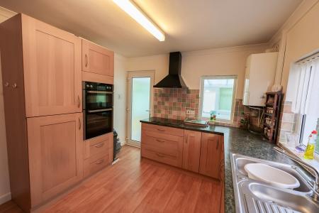 11' 6" x 10' 2" (3.51m x 3.10m) Large window to the side. Wall mounted Worcester gas fired boiler. A good range of oak units with built in ceramic hob with extractor above. Eye level double oven. Built in fridge and freezer. Built in dishwasher. Tiled splashback. Double radiator. Window to the rear. Full glazed door to conservatory,