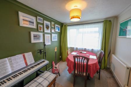 10' 5" x 8' 1" (3.18m x 2.46m) This inviting room features a double-glazed window at the rear. A convenient doorway leads directly to the kitchen, offering seamless flow for daily living and entertaining. The dimmer switch-controlled lighting adds a touch of versatility, letting you create the perfect ambiance for any occasion.