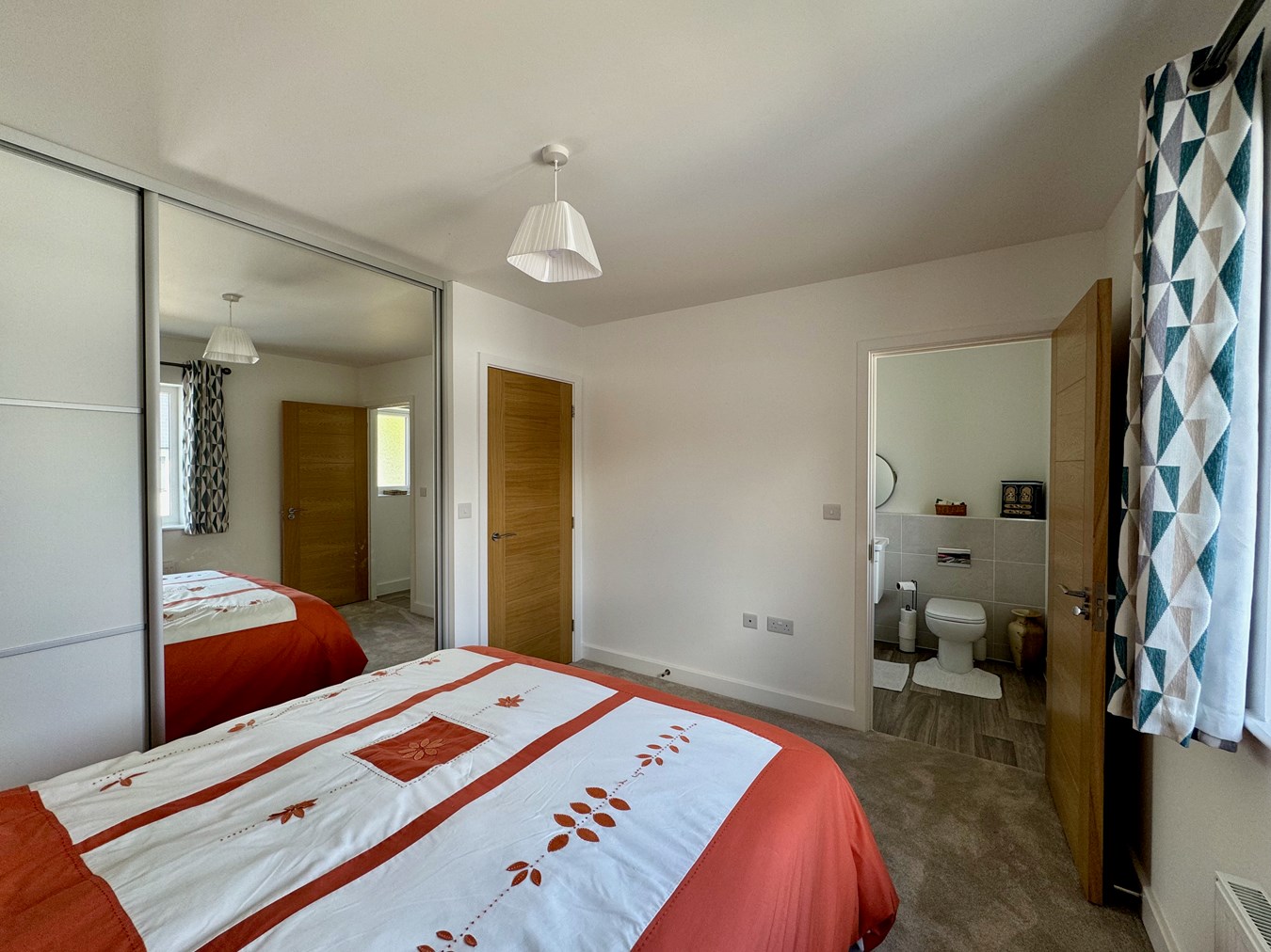 Double Bedroom with fitted wardrobe behind three full length sliding doors, one with mirror