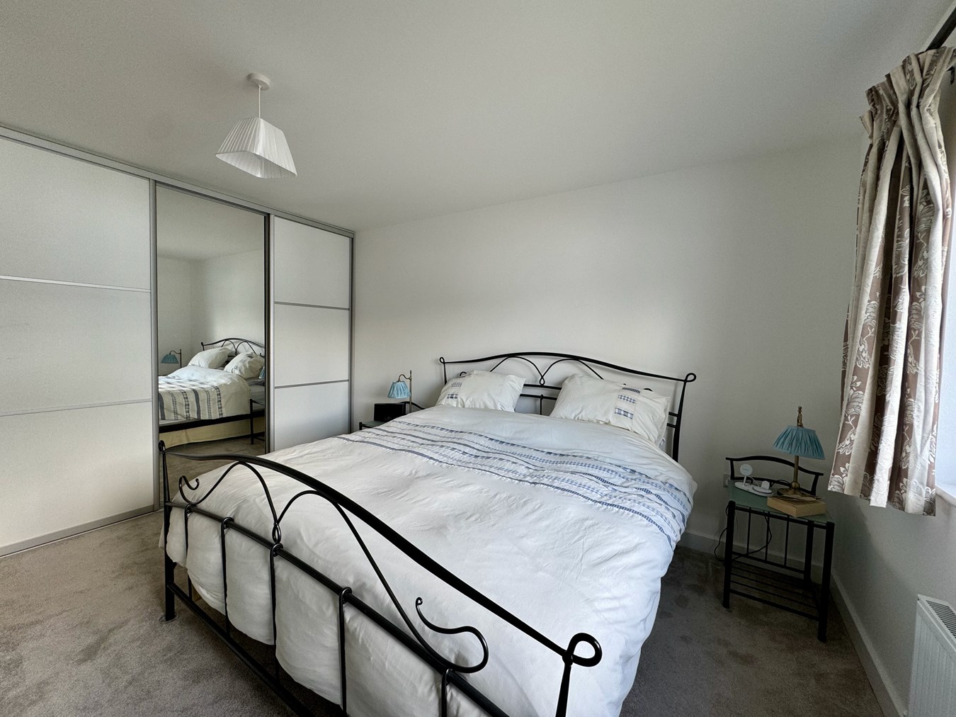 Double Bedroom with fitted wardrobe behind two full length sliding doors, one with mirror