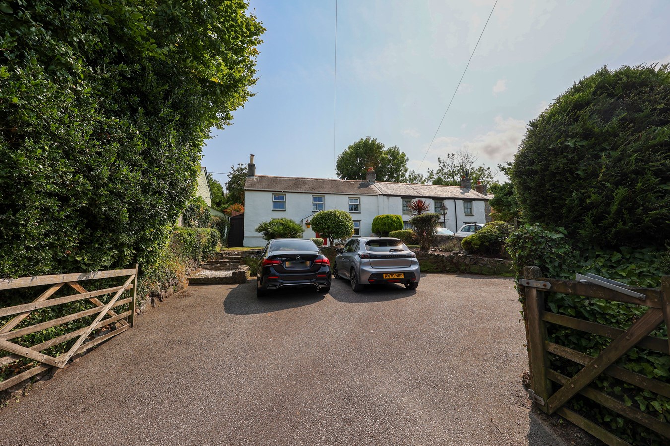 Set well back from the road behind mature hedging, it features a large gated entrance and generous front parking.