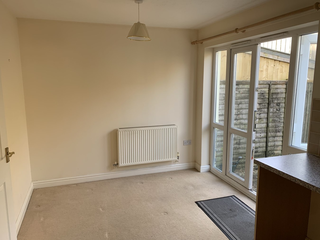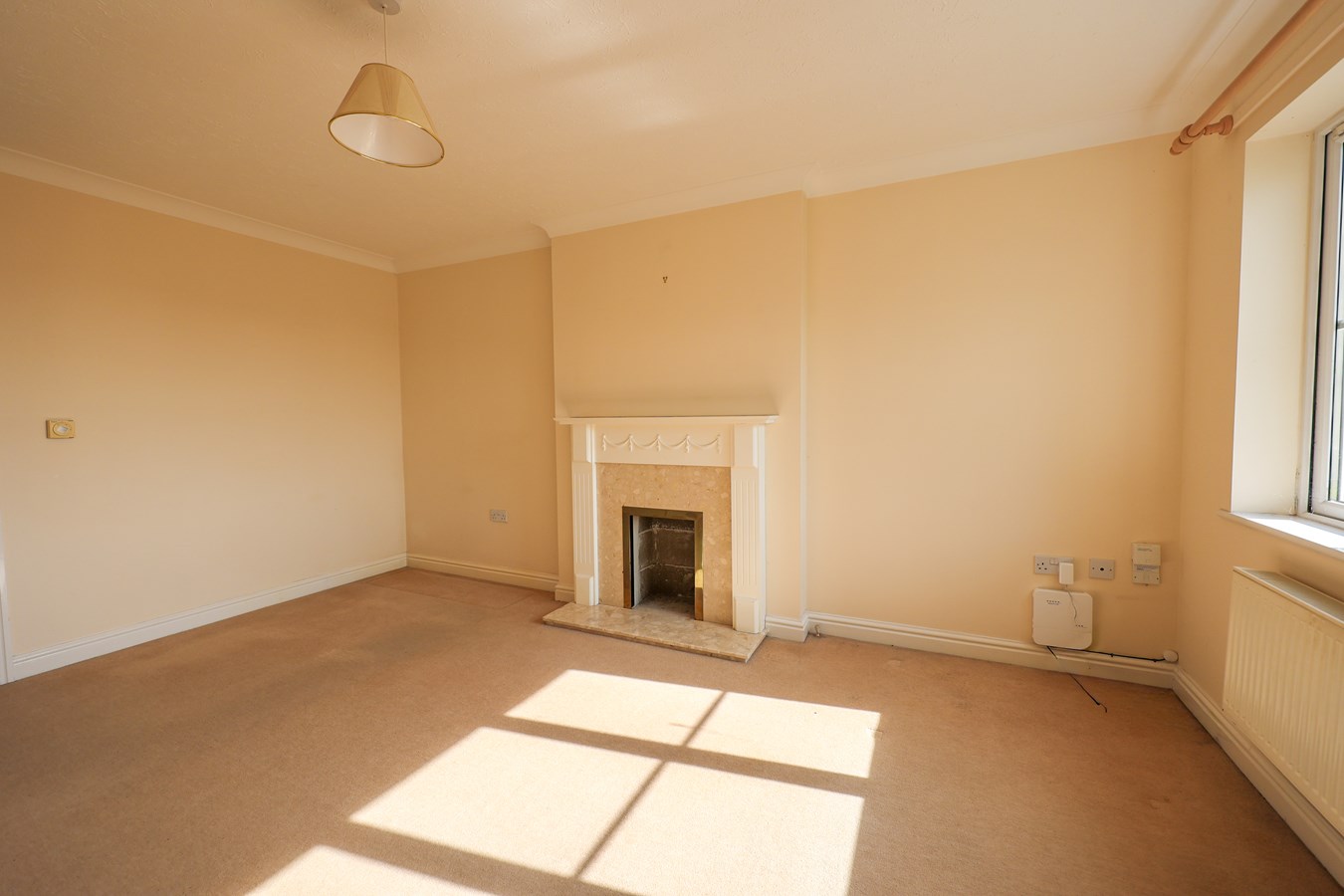 18' 04" x 10' 4" (5.59m x 3.15m) Double glazed window to front. Built-in under-stairs cupboard. Central heating radiator and thermostat. focal point fireplace. Door to;