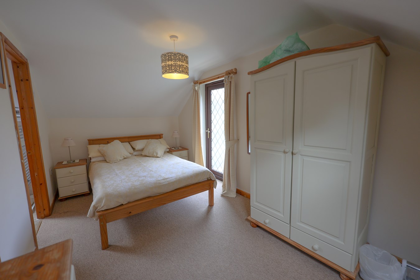 4.4m x 2.88m (14' 5" x 9' 5") With skylight window, full glazed door with steps leading to the ground floor, door to the en suite bathroom.