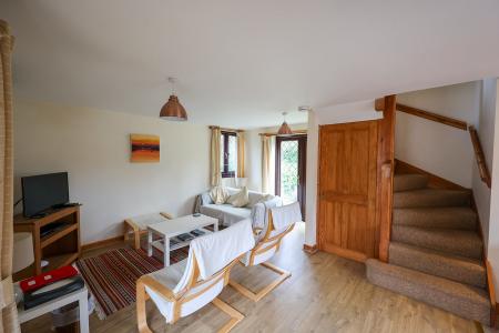 The holiday home benefits from its own separate access from the main road, along with independent parking and a gravelled area.