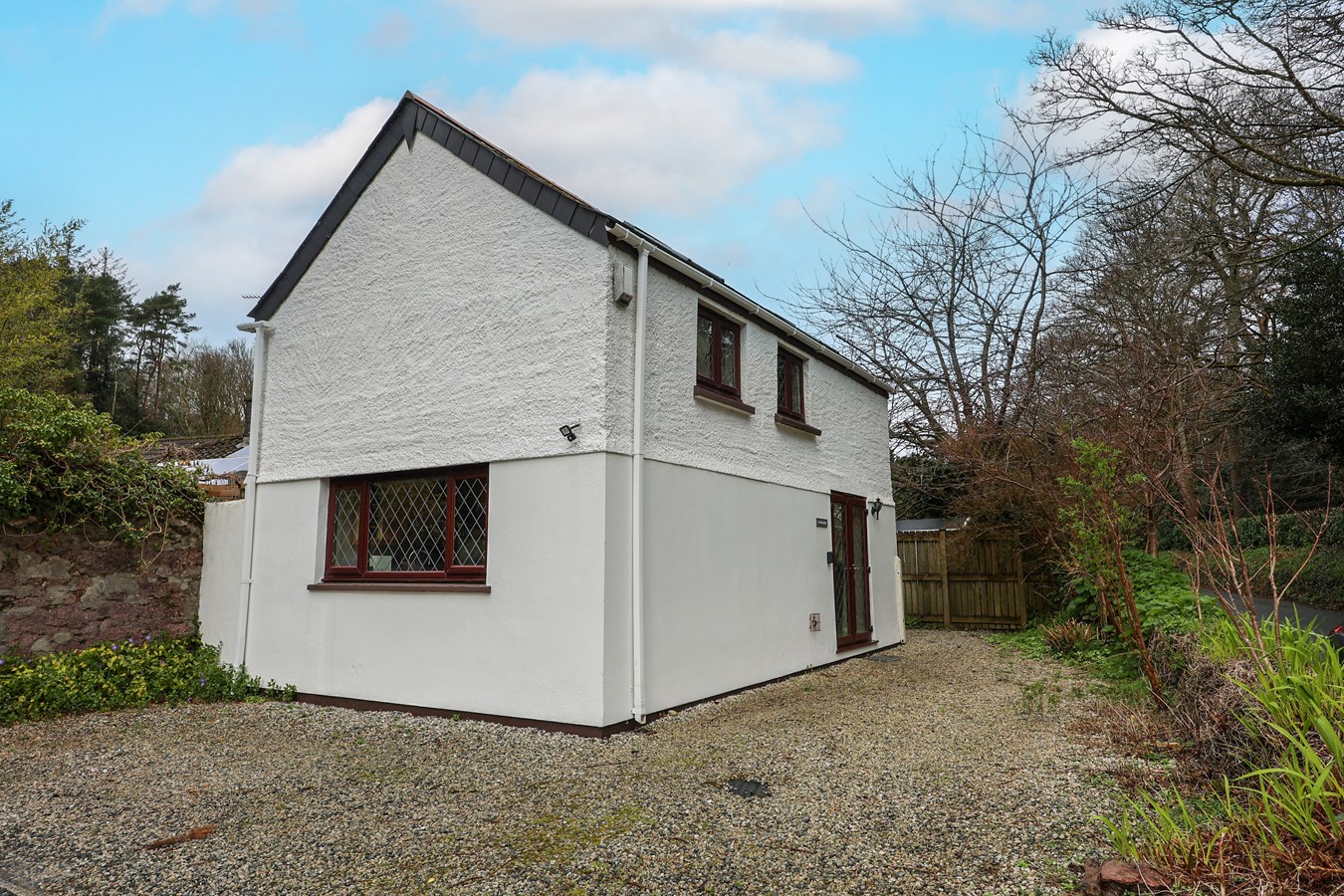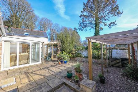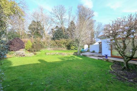 The principal garden lies to the front left and side of the property, where the main entrance is also located. It is mainly laid to lawn and features a variety of mature shrubs. A paved patio offers space for outdoor seating, with a gated pathway leading to a further patio area that serves the holiday cottage and also provides access to the bungalow?s rear garden.