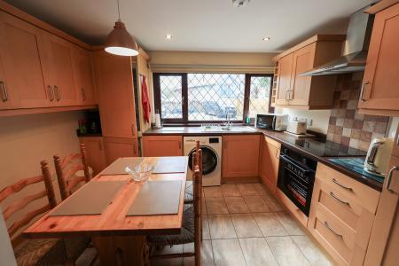 Fitted with a range of wood fronted units and butchers block style work top units, built in fridge/freezer, sink unit, space and plumbing for washing machine, built in oven with ceramic hob unit above, leaded light window to the front.