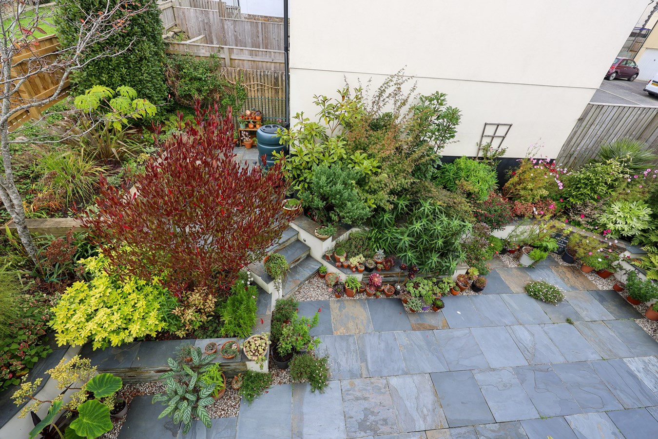 To the front of the property there is a small easy to maintain garden bounded by a dwarf stone wall planted with a variety of hardy shrubs and a small tree. The rear garden has been landscaped with ease of maintenance in mind offering a natural Slate finish to the garden with raised shrubs beds and small tiered areas with a colourful selection plants and shrubs. There is side access to the rear with the garage immediately behind garden.