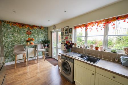 16' 0" x 9' 0" (4.88m x 2.74m) With door to the under stairs cupboard, small breakfast bar, Full glazed/French doors to the rear, window to the rear, space and plumbing for washing machine and dishwasher, cupboard housing wall mounted Baxi gas fired boiler which supplies radiators and hot water. Built in oven gas hob, extractor and dishwasher. Plinth lighting, tiled splashback, space for fridge/freezer, low voltage lighting.