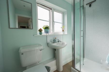 7' 0" x 4' 0" (2.13m x 1.22m) With low voltage lighting, extractor, window to the front, low level W.C , wash hand basin, vertical towel Radiator with dual control and Shower cubicle with mains shower.