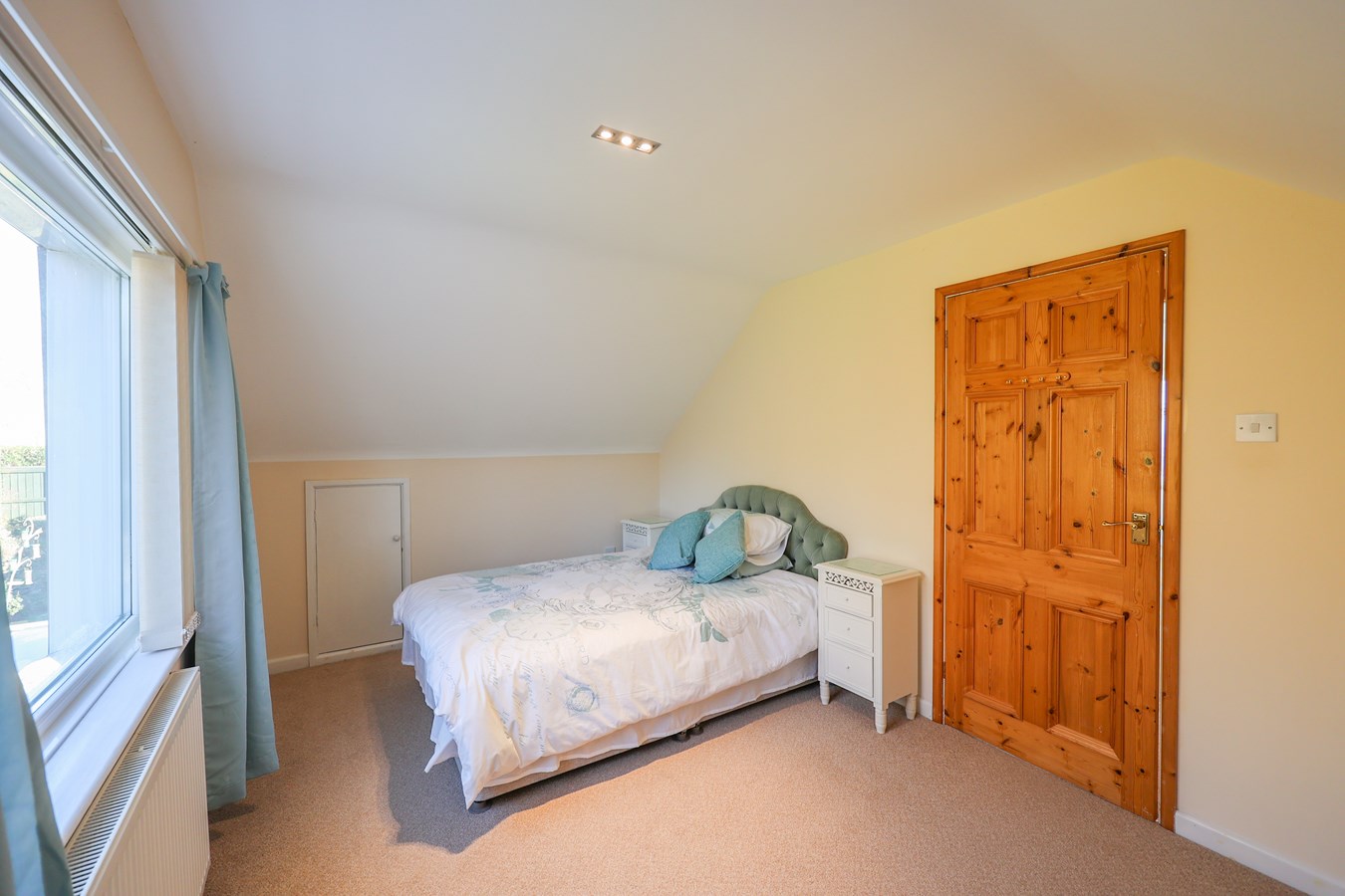 With a fitted wardrobe cupboard and eaves storage cupboard, large window to the front with panoramic coastal views.