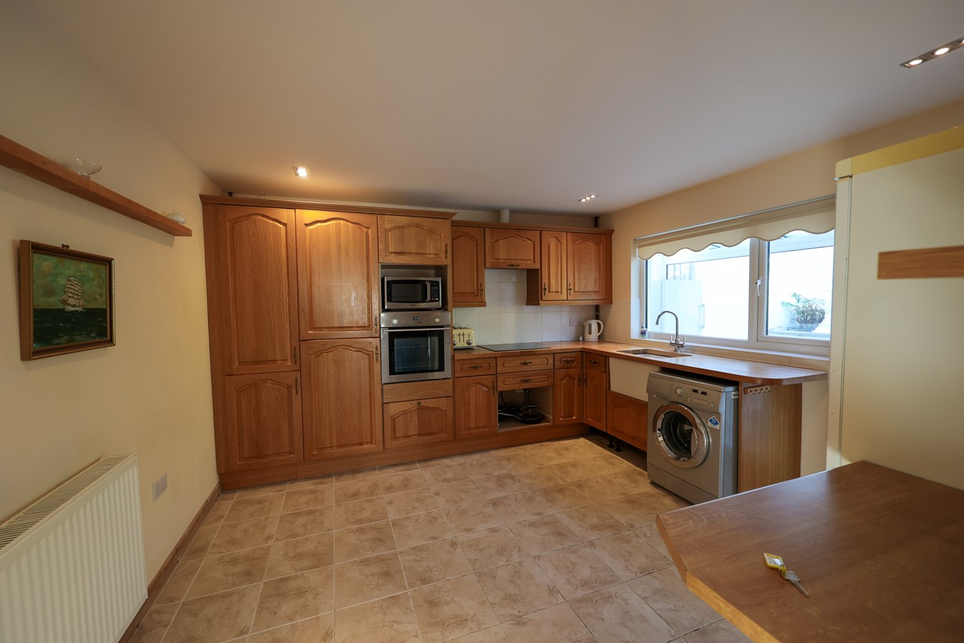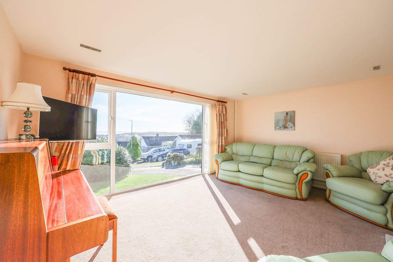 For sale and chain free is this well presented detached dormer style property forming part of a small open crescent enjoying superb town and coastal views for many miles. The accommodation comprises of spacious entrance hall, lounge with an open fireplace, well fitted kitchen/dining room, rear conservatory with a useful utility area and door leading into the garage, ground floor bathroom with a separate shower, separate W.C. three double bedrooms, with one of the bedrooms on the ground floor. Outside plenty of parking, enclosed rear garden.