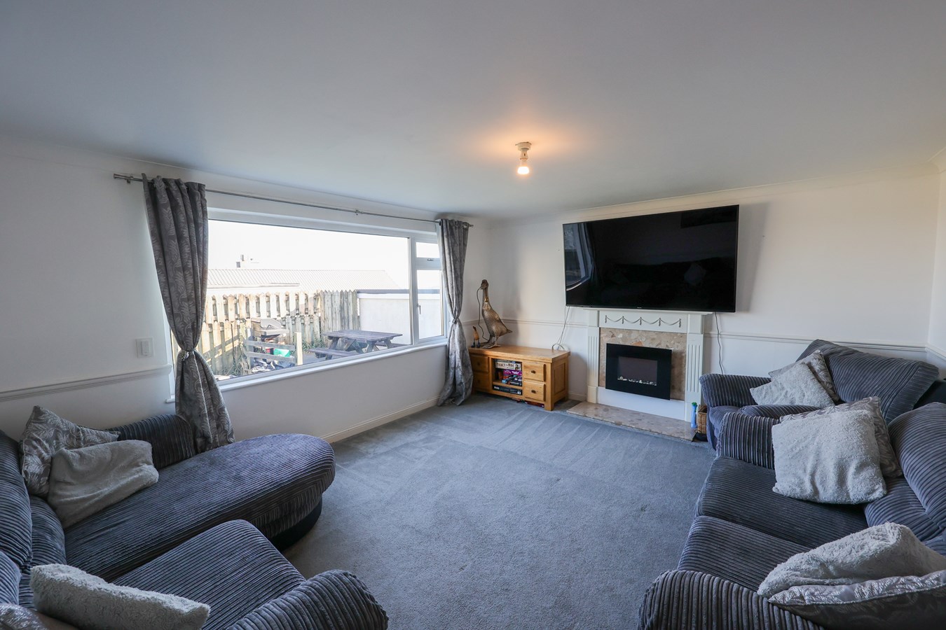 3.91m x 3.22m (12' 10" x 10' 7") A standout feature of this home is the large window to the rear, perfectly framing the breathtaking sea views that stretch across to the iconic Gribben Point. This impressive vista is a unique aspect of this property.