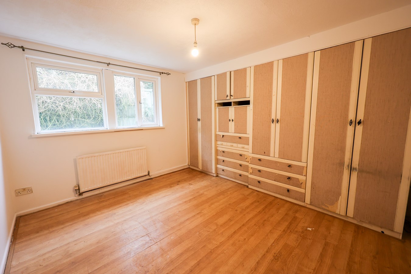3.62m x 3.5m (11' 11" x 11' 6") Fitted with a range of wardrobe cupboards, two windows to the rear and two wall lights.