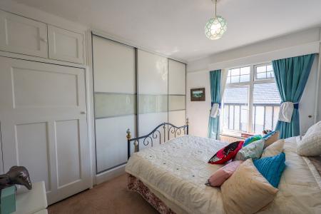 4.26m x 3.0m (14' 0" x 9' 10") This bright and well-appointed space features a small bay window at the front, complemented by a leaded light window to the side, enhancing natural light and character. A fitted double wardrobe provides excellent storage.