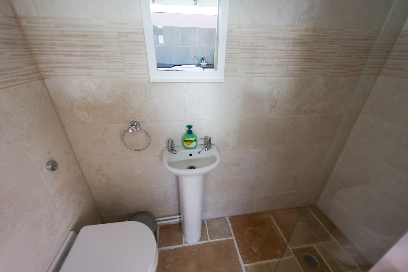 Featuring a low-level W.C. and a wash hand basin, rear-facing window.
