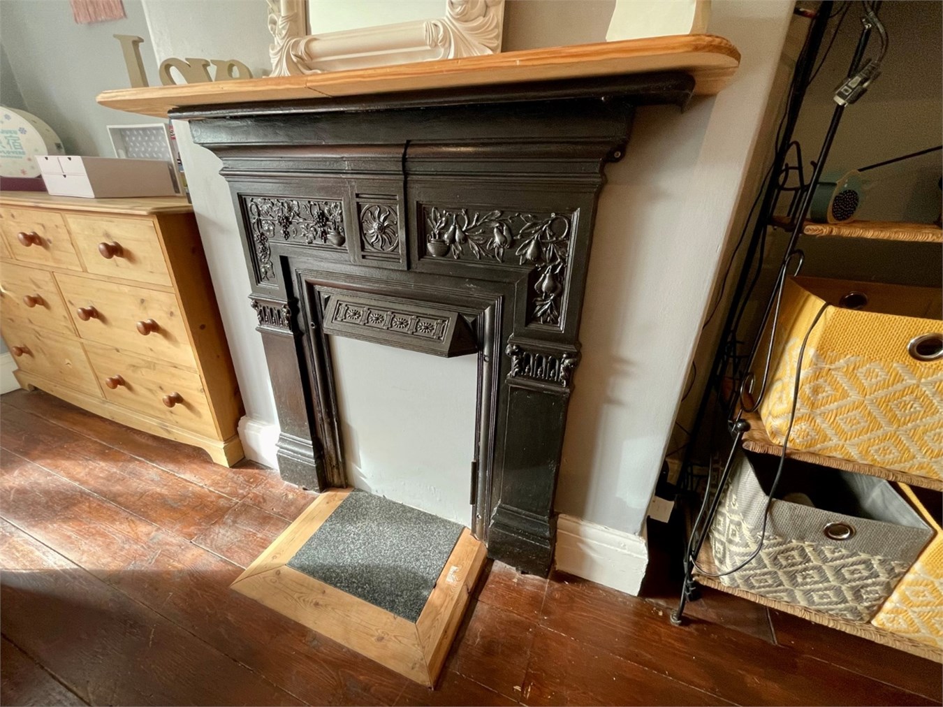 12' 4" x 11' 2" (3.76m x 3.40m) Upvc window to front elevation, picture rail, timber floorboards, radiator, fireplace with wood burner, archway into