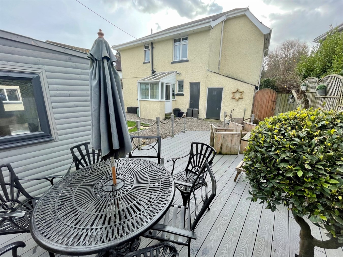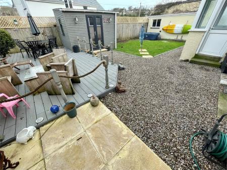 The property is approached via a resin driveway with parking for numerous vehicles, this in turn leads to the single garage. The front of the property also enjoys a lawn garden as to does the rear along with stone chipped walkways and a raised composite decking area along side the outside bar.