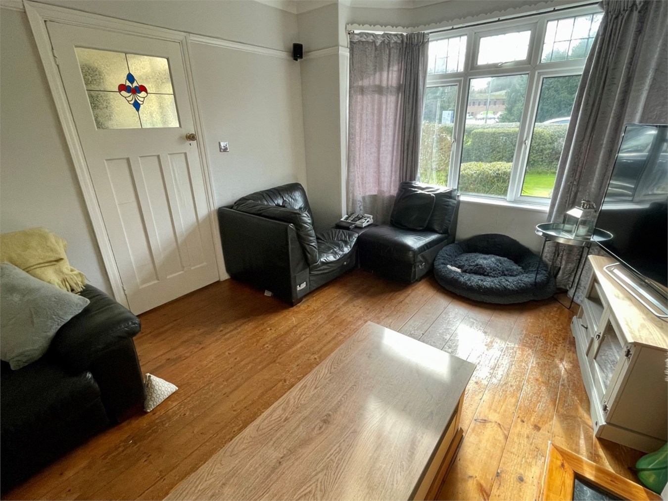 13' 9" x 12' (4.19m x 3.66m) plus upvc bay window to front elevation, two frosted glass windows to side, feature fireplace with gas flame fire, picture rail, radiator, timber floorboards.